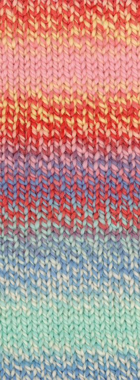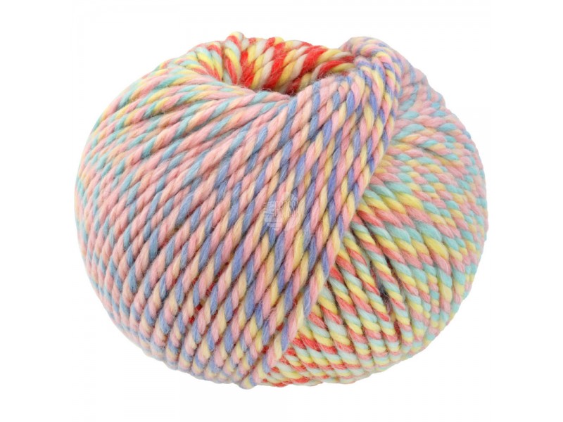 Met deze dikke wol heb je snel een vest, sjaal of muts gebreid. Drievoudig getwijnd en bedrukt in leuke kleuren, in merinowol met acryl.