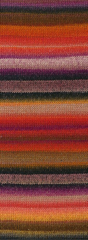 Merinowol met een bijzonder streepeffect. Dit garen is heerlijk om te verwerken en te dragen. Met veel mooie patronen, voor kleding en stola en sjaals.