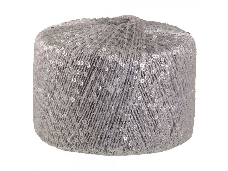 Een glansdraad met pailetten om mee in te breien, in bijvoorbeeld een mouw of halsrand.