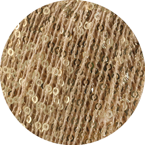 Een glansdraad met pailetten om mee in te breien, in bijvoorbeeld een mouw of halsrand.