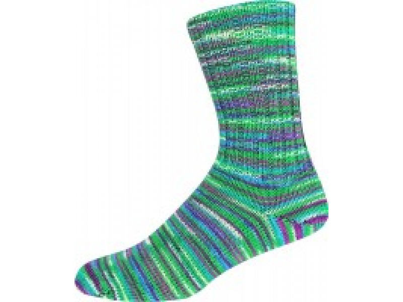 Fijne, warme sokkenwol in onregelmatig streepjes patroon. In vrolijke kleuren, ook leuk voor (kinder)truien!