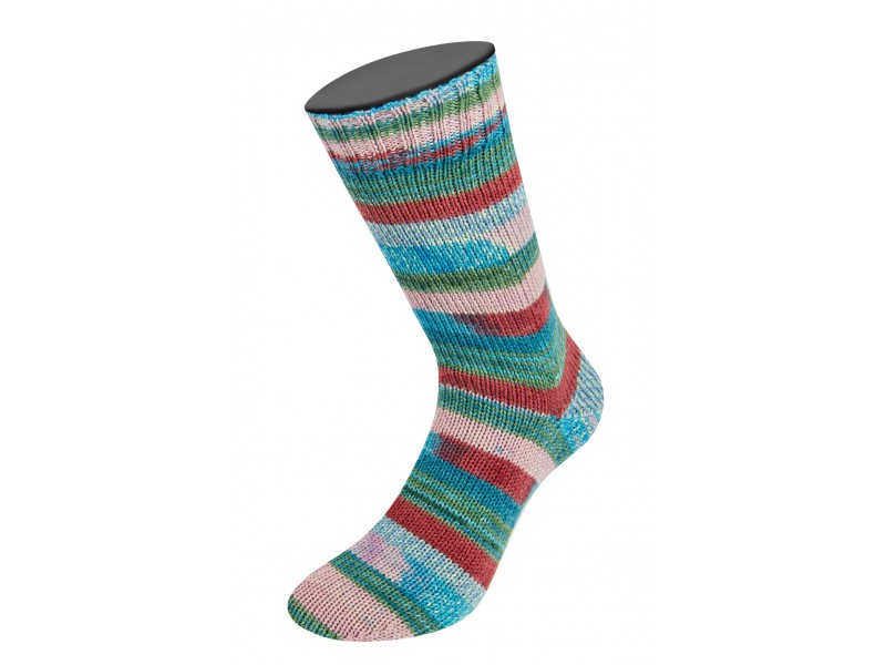 Met ongelijke strepen en vlakken ziet deze sokkenwol er na het breien echt kunstzinnig uit! De kleurcombinaties zijn bijzonder. Door de toegevoegde Aloë Vera is de wol heerlijk zacht. Mooi voor sokken, maar ook voor truien. Dit garen is ook geschikt voor de breimachine.