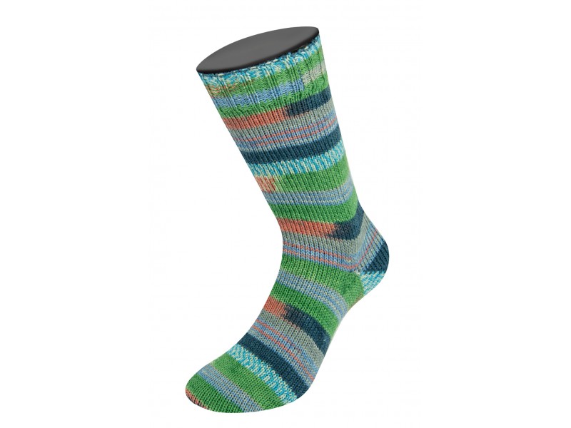 Met ongelijke strepen en vlakken ziet deze sokkenwol er na het breien echt kunstzinnig uit! De kleurcombinaties zijn bijzonder. Door de toegevoegde Aloë Vera is de wol heerlijk zacht. Mooi voor sokken, maar ook voor truien. Dit garen is ook geschikt voor de breimachine.